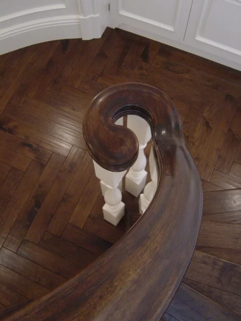 The multi-level interior was redesigned to create a sophisticated entry foyer and staircase that harmoniously blends formality and intimacy.